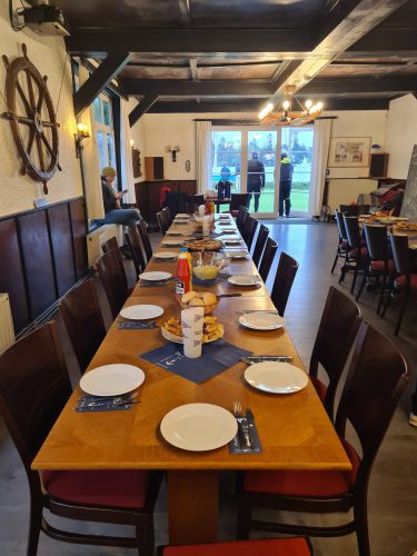 Wir begrüßten erstmal alle Crews und takelten unseren 20er auf, bevor wir in unser Quartier nach Ebensee fuhren, wo wir eine Ferienwohnung im „Katzerhaus“ gebucht hatten.