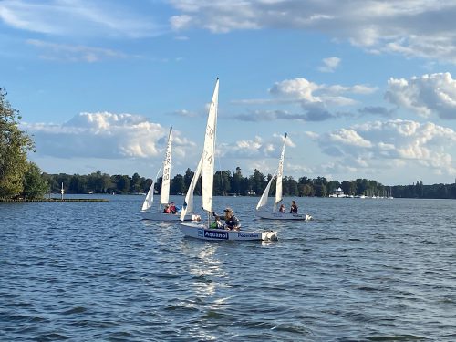 Vielmehr zeichnen sich die Regatten dadurch aus, dass man neue Freundschaften knüpft, neue Reviere kennenlernt und die große weite Welt sieht. Gesegelt sind wir schon in Brandenburg, Mecklenburg-Vorpommern und Sachsen. Aber auch der Gardasee und die Atlantikküste wurde schon von unseren Kids besegelt. Meist sind wir von Freitag bis Sonntag unterwegs und segeln um die Wette.