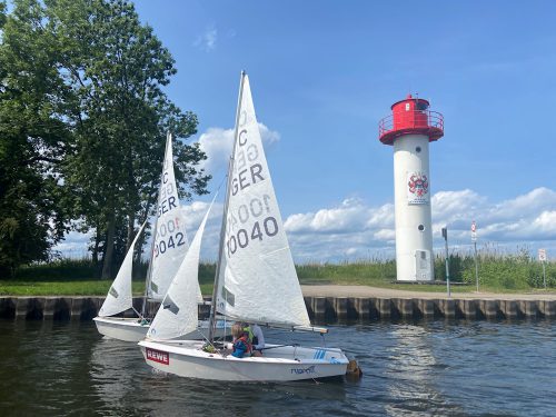 Bei den Cadets waren 19 Boote am Start. Für den Segel Club Zeuthen traten Larissa und Lexi (GER 9974) sowie Jonas mit Ansgar (GER 10040) an. Für Larissa war es die erste Regatta in diesem Jahr und für Jonas war die LJM die Premiere als Steuermann. Entsprechend nervös und aufgeregt waren beide Besatzungen.